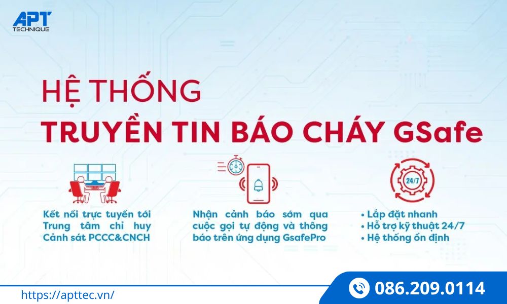 Công ty TNHH Kỹ Thuật APT là đơn vị phân phối và lắp đặt thiết bị truyền tin báo cháy Gsafe G6 chính hãng, đáng tin cậy tại Việt Nam. Với kinh nghiệm chuyên sâu trong lĩnh vực phòng cháy chữa cháy (PCCC), chúng tôi cam kết mang đến giải pháp toàn diện, từ tư vấn đến hậu mãi.